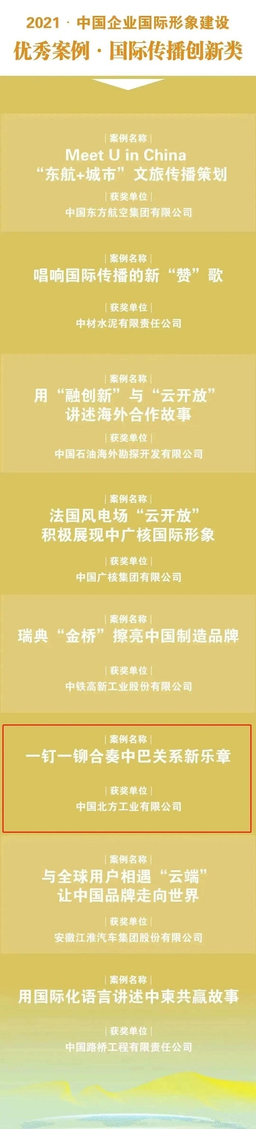 北方公司海外項(xiàng)目案例入選2021·中國企業(yè)國際形象建設(shè)“國際傳播創(chuàng)新類”優(yōu)秀案例 |