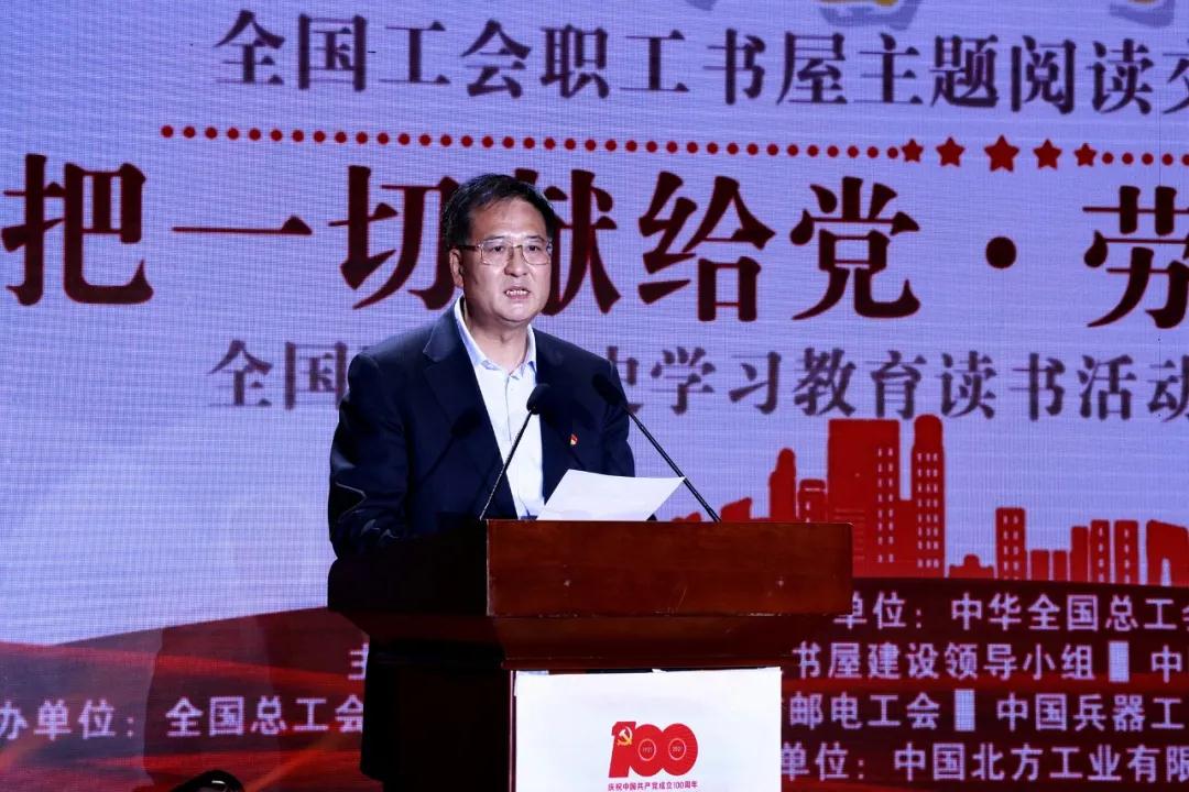 活動(dòng)由全總宣教部、中國(guó)國(guó)防郵電工會(huì)、中國(guó)兵器工業(yè)集團(tuán)有限公司黨群工作部、中國(guó)工人出版社共同承辦,中國(guó)北方工業(yè)有限公司協(xié)辦。來自中華全國(guó)總工會(huì)、全國(guó)工會(huì)職工書屋建設(shè)領(lǐng)導(dǎo)小組成員、部分全國(guó)工會(huì)職工書屋公益代言人,各全國(guó)產(chǎn)業(yè)工會(huì)、全總各部門負(fù)責(zé)同志,部分省市總工會(huì)副主席、宣教部長(zhǎng),兵器工業(yè)集團(tuán)一線勞模工匠、職工代表等參加活動(dòng)。