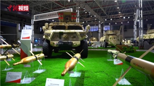 【解說】據(jù)介紹,中國兵器工業(yè)集團(tuán)帶來的展品共計175款,其中52款為首次參展。在展館最顯眼處是一輛全新發(fā)布的升級款的VT4系列主戰(zhàn)坦克,它在態(tài)勢感知能力,有/無人協(xié)同作戰(zhàn)能力上有全面提升。