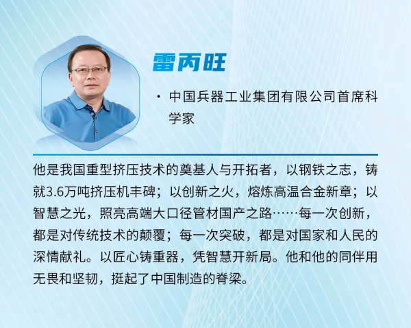 |   近日,《科學(xué)中國(guó)人》雜志社發(fā)布2024“年度科技人物”榜單,中國(guó)兵器首席科學(xué)家、北重集團(tuán)雷丙旺當(dāng)選“影響力科學(xué)家”。   雷丙旺是我國(guó)極端金屬擠壓技術(shù)的開(kāi)拓者,扎根邊疆地區(qū)國(guó)防特大型企業(yè)工作38年,長(zhǎng)期從事金屬成形制造裝備與工藝研究工作。他研制出我國(guó)極限制造的大國(guó)重器——3.6萬(wàn)噸黑色金屬垂直擠壓機(jī),一舉打破國(guó)外技術(shù)封鎖,填補(bǔ)國(guó)內(nèi)空白,實(shí)現(xiàn)了超(超)臨界電站核心管道和航空發(fā)動(dòng)機(jī)高壓渦輪盤粉末合金棒材的中國(guó)制造,開(kāi)發(fā)出成套關(guān)鍵技術(shù),取得一系列原創(chuàng)性成果,促進(jìn)了產(chǎn)業(yè)的融合發(fā)展,創(chuàng)造巨大經(jīng)濟(jì)社會(huì)效益。